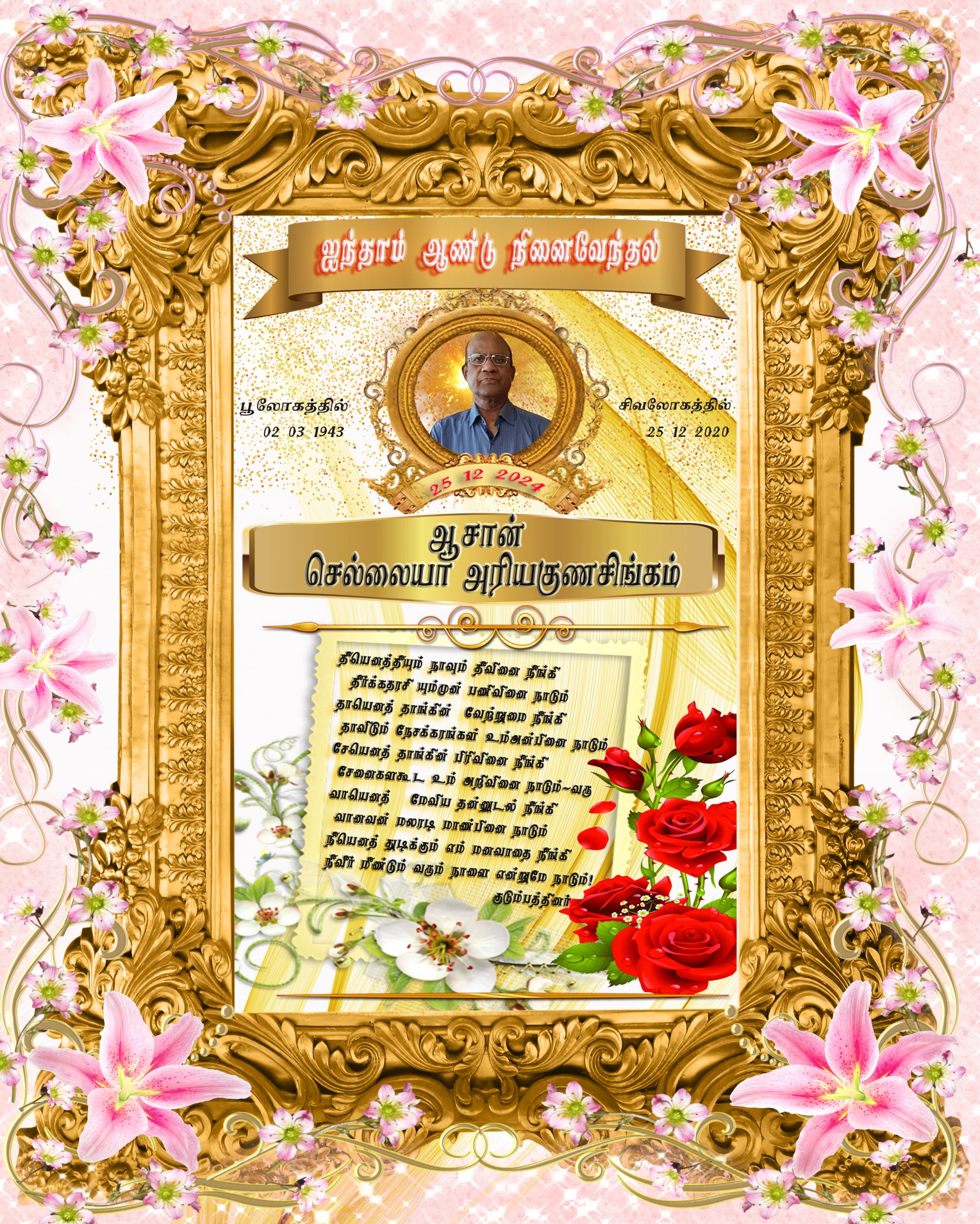 ஆசான் செல்லையா அரியகுணசிங்கம் அவர்களின் ஐந்தாம் ஆண்டு நினைவேந்தல்